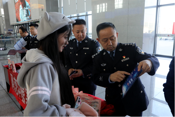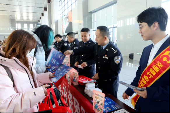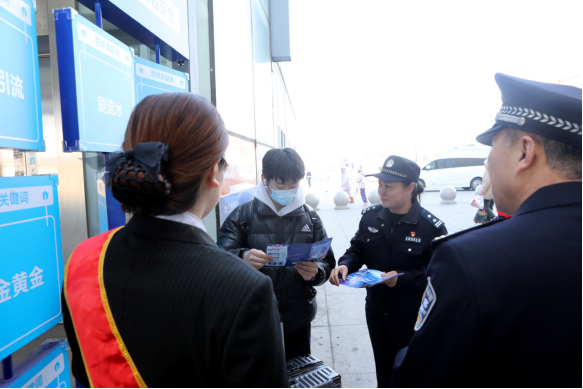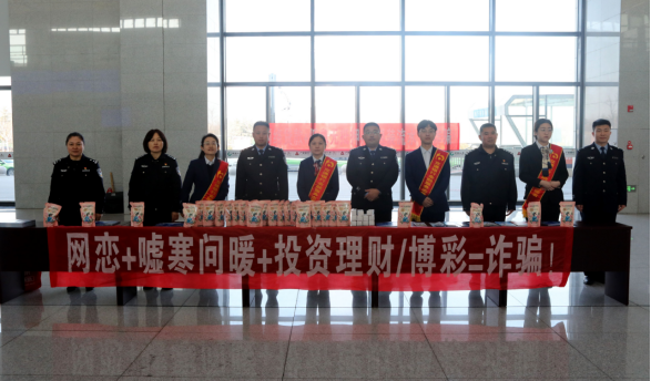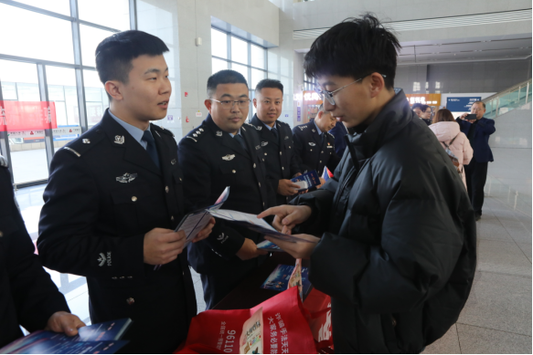 本网青岛讯 (通讯员 宋学友)归乡潮涌,平安相伴。春运大幕正式拉开后,万千旅客踏上返乡返程之路。为切实增强旅客识骗、防骗、拒骗能力,守护群众财产安全,2月11日,由青岛莱西市公安局反诈中心、青岛铁路公安处莱西站派出所、交通银行莱西支行共同协办的春运反诈安全宣传活动在莱西动车站正式拉开帷幕。