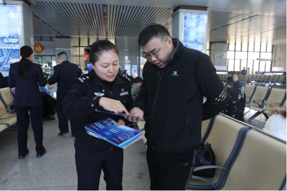 本次活动以“警银联手护春运 平安同行暖民心”为主题,聚焦老年群体、外出务工人员、返乡学生等诈骗风险防范能力薄弱人群,打造集知识性、趣味性、互动性于一体的沉浸式反诈知识宣教体验,为旅客搭建起安全守护、温情相伴的春运平安防线。