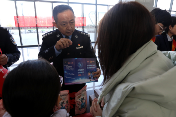 活动现场互动氛围热烈,公安民辅警结合春运期间高发的电信网络诈骗类型,通过真实案例深入剖析诈骗手法,向过往旅客详细讲解识诈、防诈、拒诈技巧,切实提升旅客安全防范意识和自我保护能力。银行工作人员同步发放宣传资料,细致讲解假币识别方法、银行卡安全使用规范及金融消费者维权渠道,为旅客送上通俗易懂、实用管用的金融安全知识。同时,民辅警与银行工作人员走进候车区域,邀请旅客参与反诈及金融安全知识有奖问答,通过轻松活泼的互动形式,让安全防范知识更加入脑入心,使反诈宣传与欢声笑语一路同行。