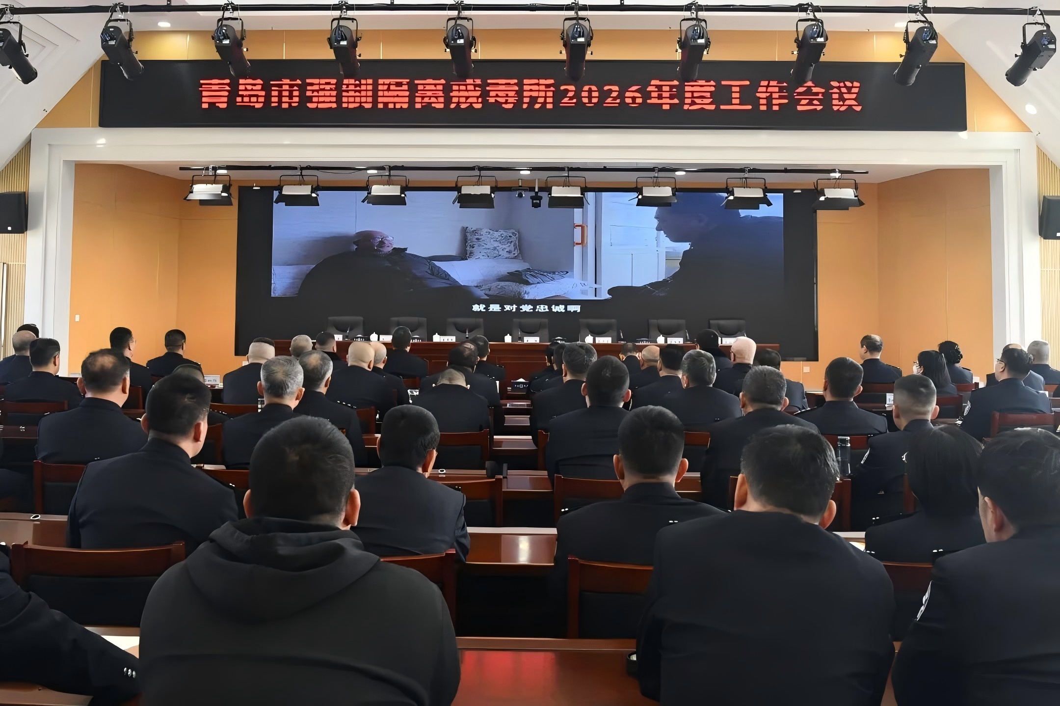 本网青岛讯 (通讯员 刘培煜 陈晓邦)2月12日,青岛市强制隔离戒毒所召开2026年度工作会议,认真学习贯彻中央政法工作会议精神、全国司法厅(局)长会议精神、全省司法行政工作会议精神以及全省司法行政戒毒工作会议精神,总结成绩,分析新形势,明确任务,奋力开创青岛戒毒事业新局面。市司法局党委委员、副局长傅强出席会议并讲话。