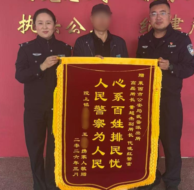近日,青岛莱西市院上镇居民辛先生专程将一面锦旗送到青岛莱西市公安局武备派出所,感谢民警辅警帮助解决家中九旬老人多年的心病。原来,老人之前使用20多年前办理的、个人信息有差错的身份证办理业务,导致社保卡审核不通过、养老补贴无法领取、银行卡无法注销。派出所通过多方查询老户口本、旧身份证,找到当年的村干部和老邻居取证,又会同民政部门,先后多次往返派出所、民政、银行之间,行程超过200公里。最终确认信息准确性,并协调市、省部门纠正错误信息。老人的难题迎刃而解,辛先生激动地说:“没想到派出所这么快就彻底解决了!”