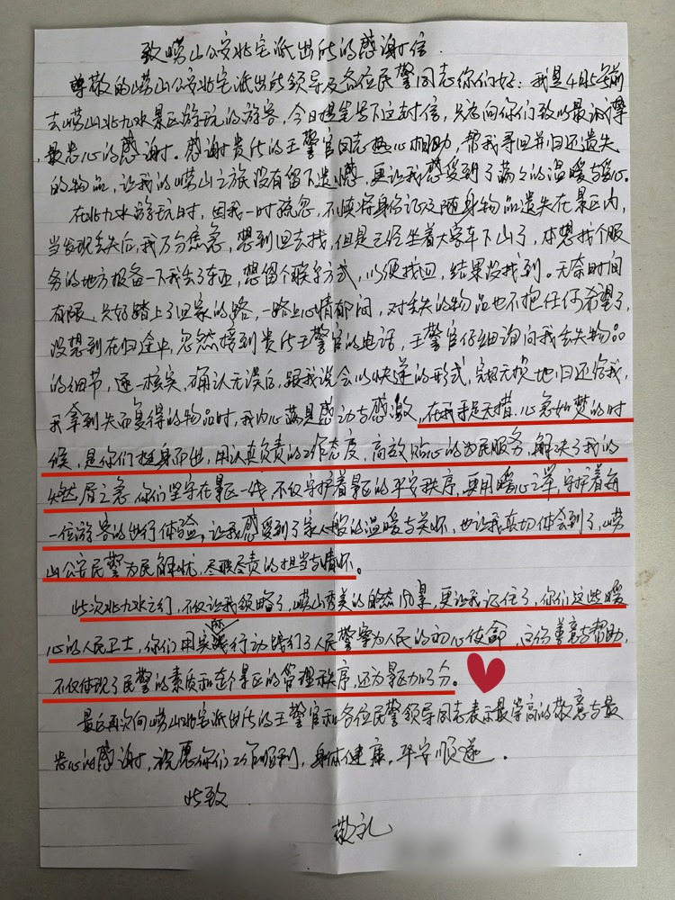 4月21日,一封手写感谢信寄到了派出所,字迹工整,句句真诚,这是他对“失而复得”最质朴的回应。