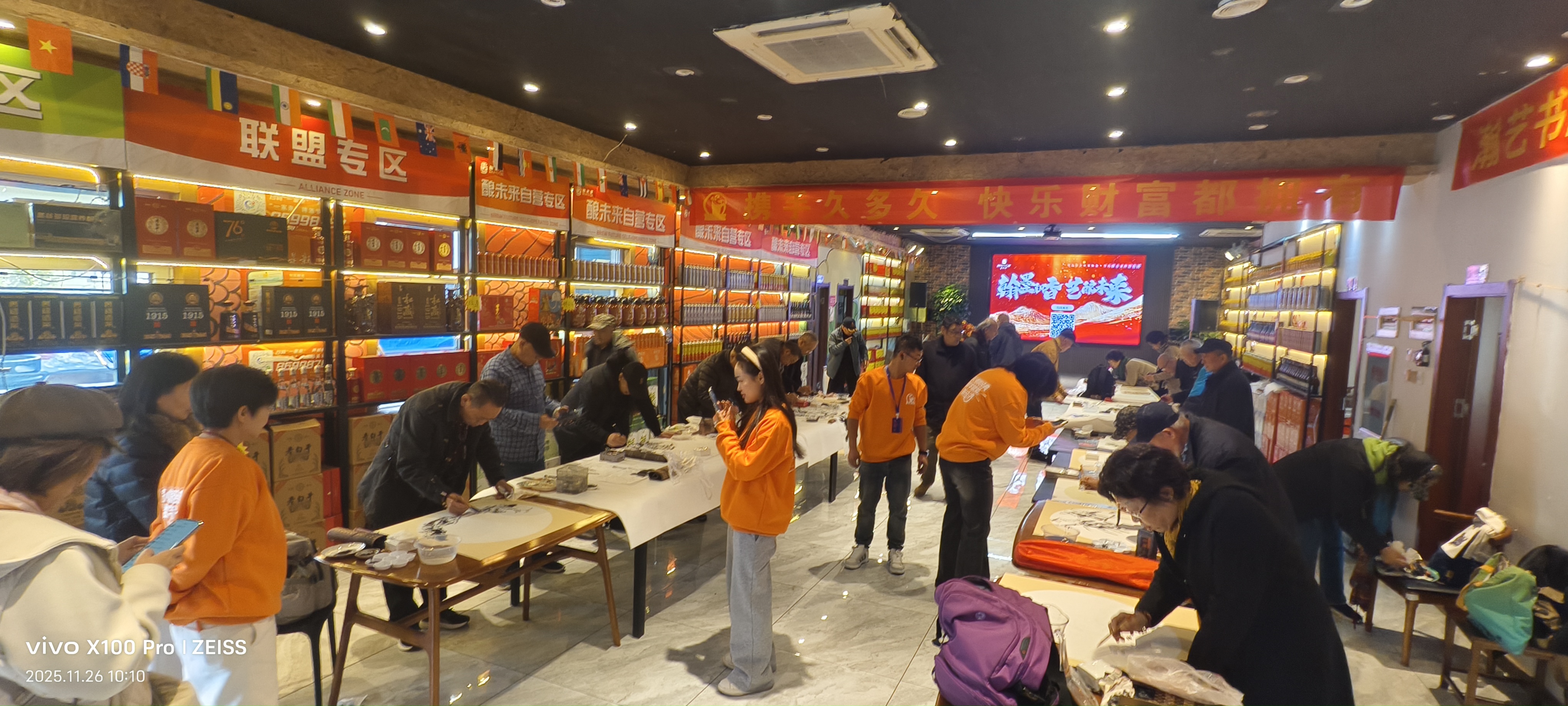 本网青岛讯(记者 吕勇进 通讯员 魏艳娜) 为积极响应国家“十五五”规划对文化传承与创新的战略指引,11月26日,由山东省国林助学慈善基金会党支部发起并主办的“党建红韵润商工程”主题笔会,在青岛酿未来控股集团隆重举行。本次活动联合青岛瀚艺书画院、山东省国林助学慈善基金会共同承办,汇聚了三十余位知名艺术家与四十多位民营企业家,以书画为媒,融红色文化、商业精神与公益情怀于一炉,共绘发展同心圆。