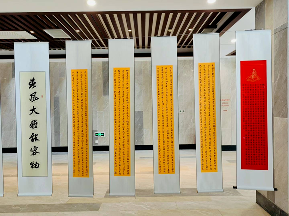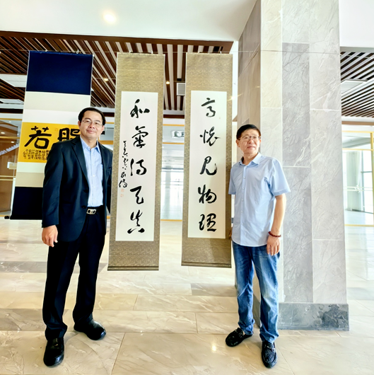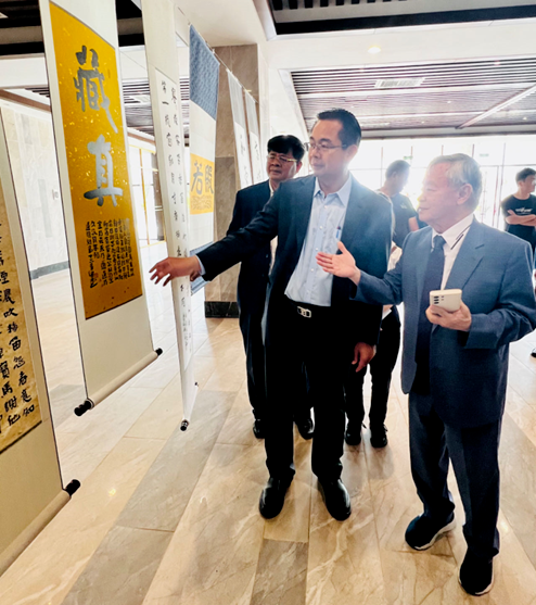 理贤书画院院长刘健向蒙西奈展示书法作品
