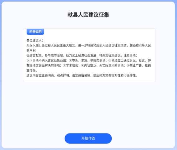 “1”是建立一个“献计献策”人民建议征集办公室。在社会工作服务中心设立“献计献策”人民建议征集办公室,面向社会工作部服务对象和基层群众干部,征集意见建议,引导群众献计献策。“2”是征集2个类型建议。即一般建议,主要指群众对社会治理、经济发展、民生改善、环境保护、文化发展、城市建设、乡村振兴、社会保障等方面的合理化建议。专项建议,主要指根据当前社会热点难点问题,发布专项征集信息,向广大人民群众征集建议。“2”是开通两个征集渠道。即线上渠道,主要是通过公众号、手机APP、二维码、电话、邮箱等收集广大人民群众建议。线下渠道,主要是依托人民建议征集办公室面对面收集人民群众、新就业群体、信访群众意见建议,积极联系人大代表、政协委员,收集优秀人民建议。“3”是征集的建议包含3方面要素。即建议人信息,包括姓名、住址和联系方式等;建议主题,有明确的原因、事由;建议对策,有明确的解决方案,且符合献县实际,客观真实,具有针对性和可操作性。“8”是严格按照8步办理程序落实人民建议。一是多范围多渠道收集人民群众意见建议;二是对建议分门别类,登记统计,明确责任单位和责任人,重要人民建议呈县委政府领导阅批;三是根据意见建议性质内容分类研判,转交到有权处理的行政机关;四是责任单位组织专班对意见建议开展可行性研究,深入调查,确定工作方案;五是对转交给各单位的意见建议倒排工期,定期督办,跨多个部门的协调调度,推动协同处理;六是建立办理单位与建议人双向沟通机制,随时听取意见,沟通进度,办理完毕后及时与建议人沟通,并上报人民建议征集办公室;七是对有价值的人民建议进行落实整改,优秀建议转化为工作部署或长效机制;八是根据人民建议的影响力和实施效果,对建议人进行通报表彰或适当物质奖励。