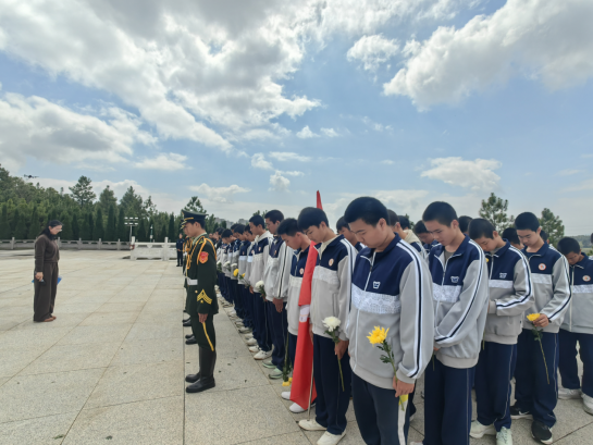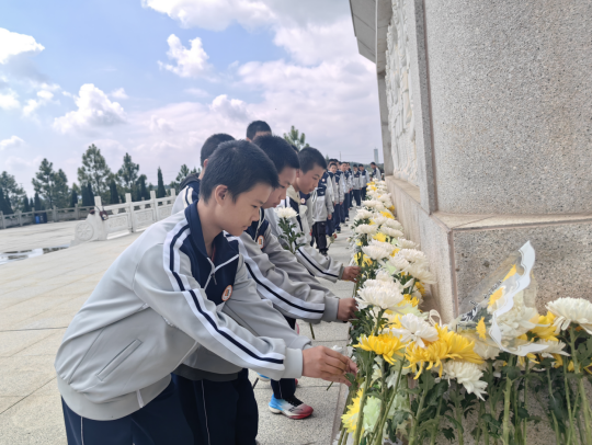 活动在庄重氛围中启幕。学校国旗护卫队代表敬献花篮,全体人员肃立默哀,向英烈致以崇高敬意。随后,学生代表陈红梅讲述英烈事迹,教师代表欧阳丽发言。校领导作总结致辞,激励学生铭记历史、传承英烈精神。而后,全体人员瞻仰纪念碑并敬献鲜花,寄托追思与缅怀。