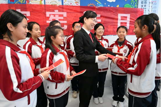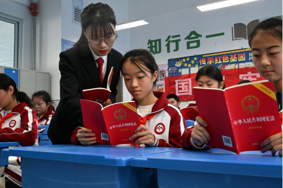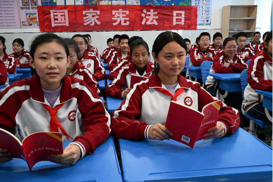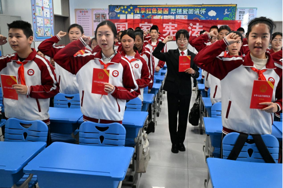 2025年12月4日,是第12个国家宪法日。山东省青岛市即墨区人民法院法官走进即墨区新兴中学开展宪法“宪法课堂进校园”活动。法官通过诵读宪法、讲解宪法读本、宪法和国徽知识等方式,普及宪法知识,弘扬宪法精神,提升学生学法、知法、守法意识。