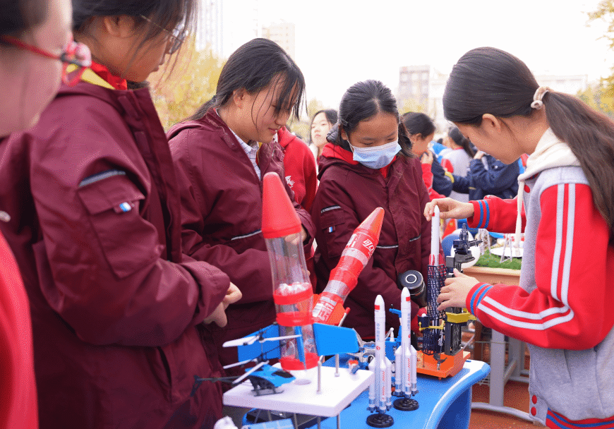 学生们在科技社团“航天数据AI分析模型”展示区参加知识问答活动,在科大讯飞智能语音体验区前排起长队,深切感受人工智能的魅力。其他兄弟学校的展台同样吸引了大量目光,机器人、3D打印等作品有效拓宽了大家的科技视野。