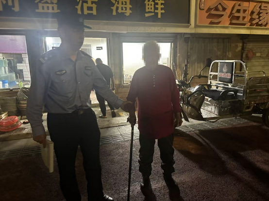 10月15日深夜11时41分,青岛市公安局崂山分局沙子口派出所接到热心群众报警称,一名年近九旬的老人在其宠物店门口长时间徘徊,疑似迷路。民警迅速赶赴现场,经耐心沟通得知,老人傍晚外出,后到深夜黑后找不到回家的路了。民警耐心安抚并咨询老人的住址,考虑到老人年纪大,腿脚不便,在确认老人住址后,民辅警将老人安全护送到家,并贴心提醒老人家属尽量避免让其夜间单独出行。