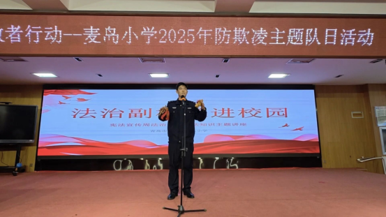 “诈骗手段在更新,同学们要擦亮眼!游戏充值莫轻信,陌生链接勿点击!”在麦岛小学的教室里,分局情指中心辅警段孝俊手持快板,用朗朗上口的节奏将安全知识传递给学生们。随后的课堂上,麦岛派出所民警封建生通过精心制作的PPT,结合真实案例,向学生们详细讲解了当前常见的电信网络诈骗手段。在校园欺凌防范环节,民警不仅播放了警示教育视频,还设置了情景讨论,引导学生在思考与交流中明白不仅要保护自己,还要做正义的守护者。