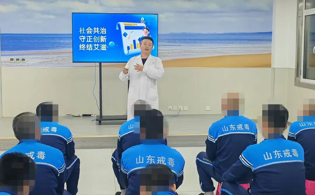 本网青岛讯 (通讯员 袁治国 陈晓邦)第38个“世界艾滋病日”到来之际,12月1日,青岛市强制隔离戒毒所紧扣“社会共治,守正创新,终结艾滋”主题,精心组织,开展了一系列形式多样、内容丰富的宣传教育活动。 活动坚持“教育为先、预防为主、创新为要”原则,全面开展多元宣传。在场所宣传方面,向全体戒毒人员发放《艾滋病防治知识手册》,做到人手一册;组织专业医护人员开展专题讲座,系统讲解艾滋病基本知识、传播途径、检测意义及防护策略;在《青岛戒毒》内部资料上刊载艾滋病科普文章与政策解读;组织医务人员集中学习《艾滋病职业暴露预防与处置规范》,并开展应急演练,提升应急处置与自我防护能力。在社会联动方面,通过青岛戒毒抖音号和微信公众号发布防艾短视频,扩大宣传影响力;组织专业讲师走进大中学校,开展“禁毒防艾”专题宣讲,提升青少年自我保护意识;积极参与即墨区多部门联合举办的集中宣传活动,设立咨询台,发放资料,展示戒毒康复成果,传播防艾政策,展现司法行政戒毒系统的责任担当。联合疾控中心对新入所人员开展艾滋病抗体检测,做到早发现、早干预。