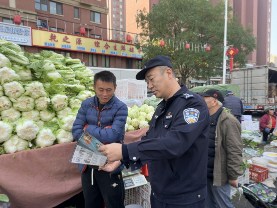 11月18日,正值仲村集人流密集之际,青岛市公安局城阳分局正阳路派出所将反诈宣传搬到集市上,以接地气的方式开展宣传活动。