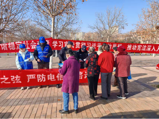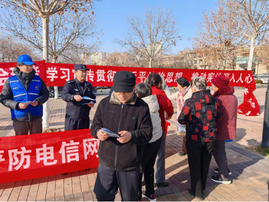 近日,青岛市公安局城阳分局流亭派出所组织警力联合街道网格员深入辖区各社区开展以“绷紧防范之弦,严防电信网络诈骗”为主题的安全宣传教育活动,将防骗知识送到居民家门口。