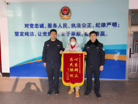 1月6日,青岛莱西市民丁女士将一面书有“心系群众 为民解忧”的锦旗送到龙水路派出所,感谢民警帮助其找回醉酒外出的丈夫。