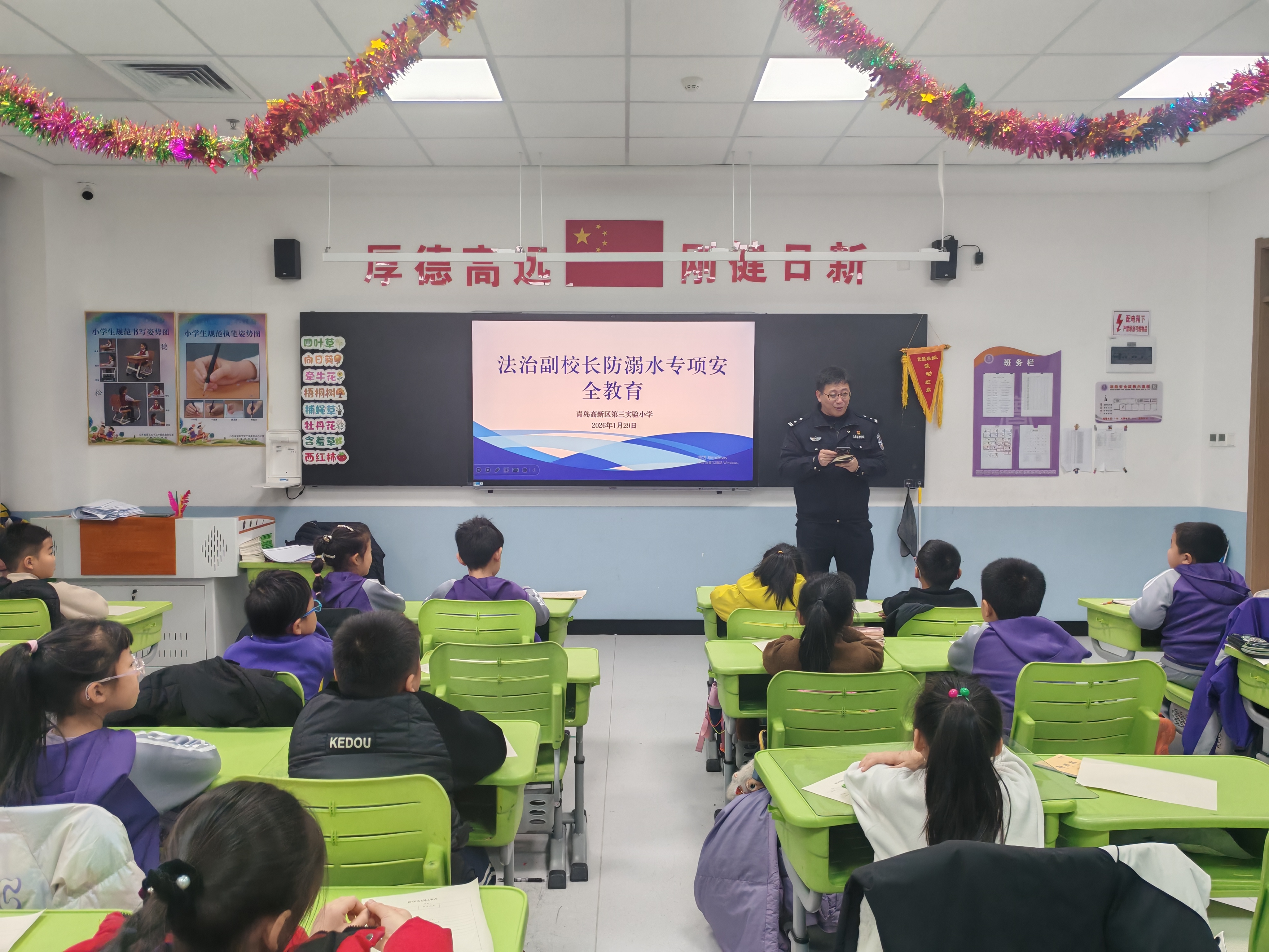 1月29日上午,青岛市城阳区火炬路派出所民警走进高新区第三实验小学,开展假期前安全宣传活动,为孩子们送上专属“安全锦囊”。