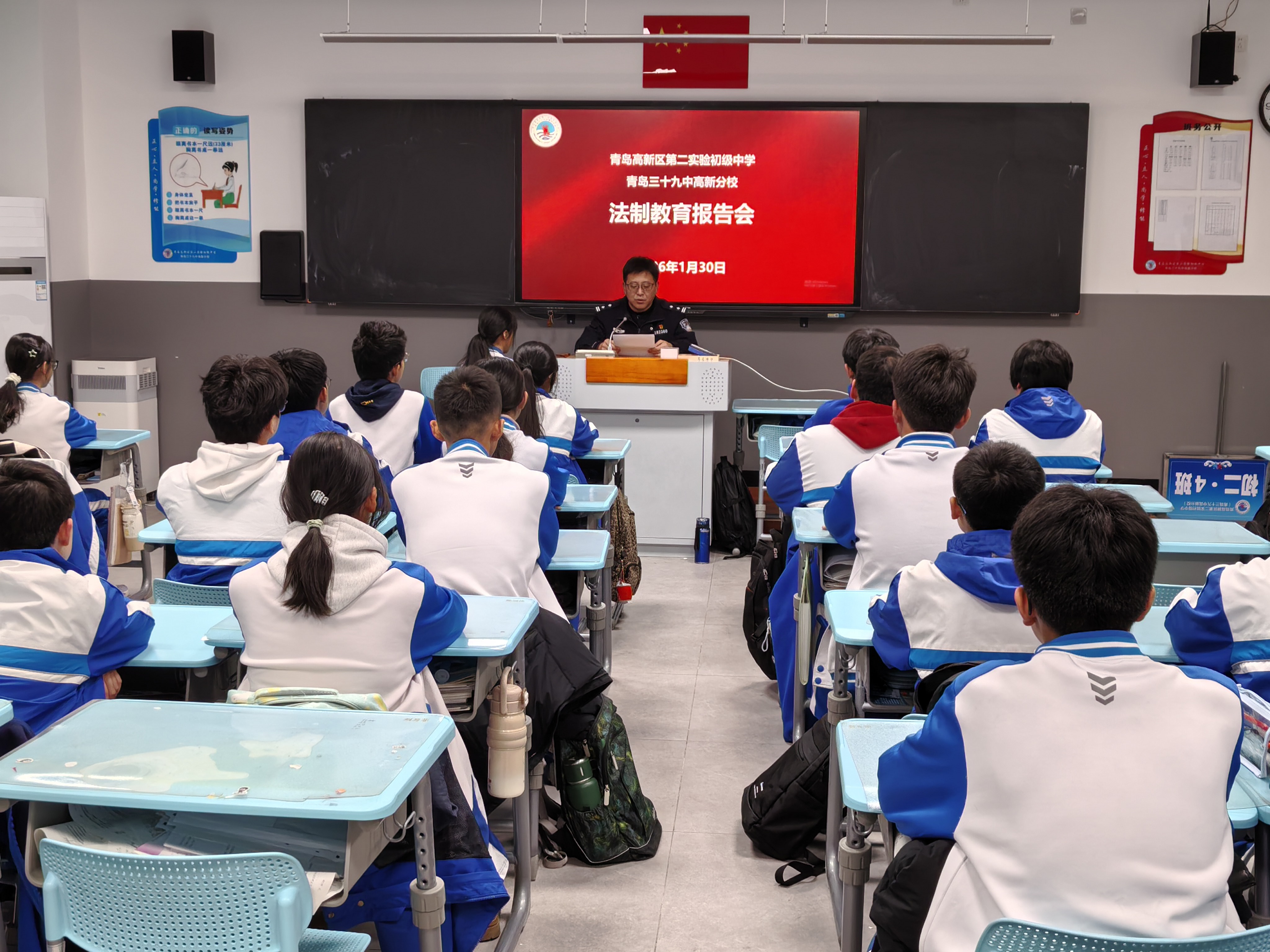 1月30日上午,青岛市城阳区火炬路派出所民警走进高新区第二实验初中,开展假期前安全宣传活动,守护青少年平安度寒假。