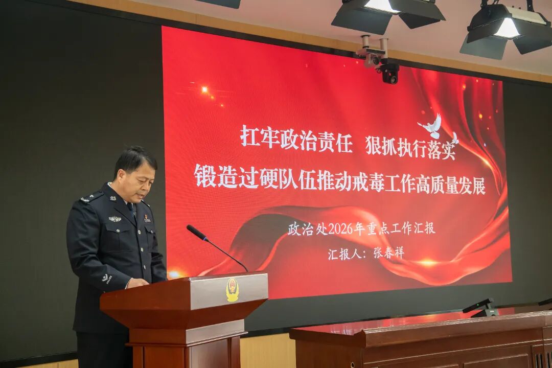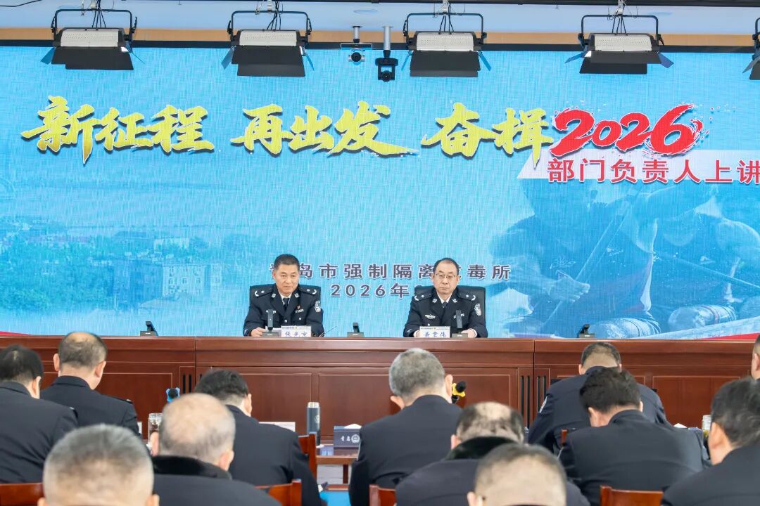本网青岛讯 (通讯员 于蓝青 陈晓邦)为深入贯彻山东省司法厅、青岛市司法局关于加强司法行政队伍建设重要会议精神,全面提升戒毒工作系统化、专业化水平,确保新的一年工作谋好篇、开好局、起好步。 2月4日,青岛市强制隔离戒毒所举办以“新征程,再出发 奋楫2026”为主题的“部门负责人上讲台”专题汇报会。青岛市强制隔离戒毒所党委副书记、政委黄聿伟主持会议,青岛市强制隔离戒毒所党委书记、所长张光京讲话。青岛市强制隔离戒毒所党委成员、各部门副处级以上领导干部以及部分群众代表参加会议。