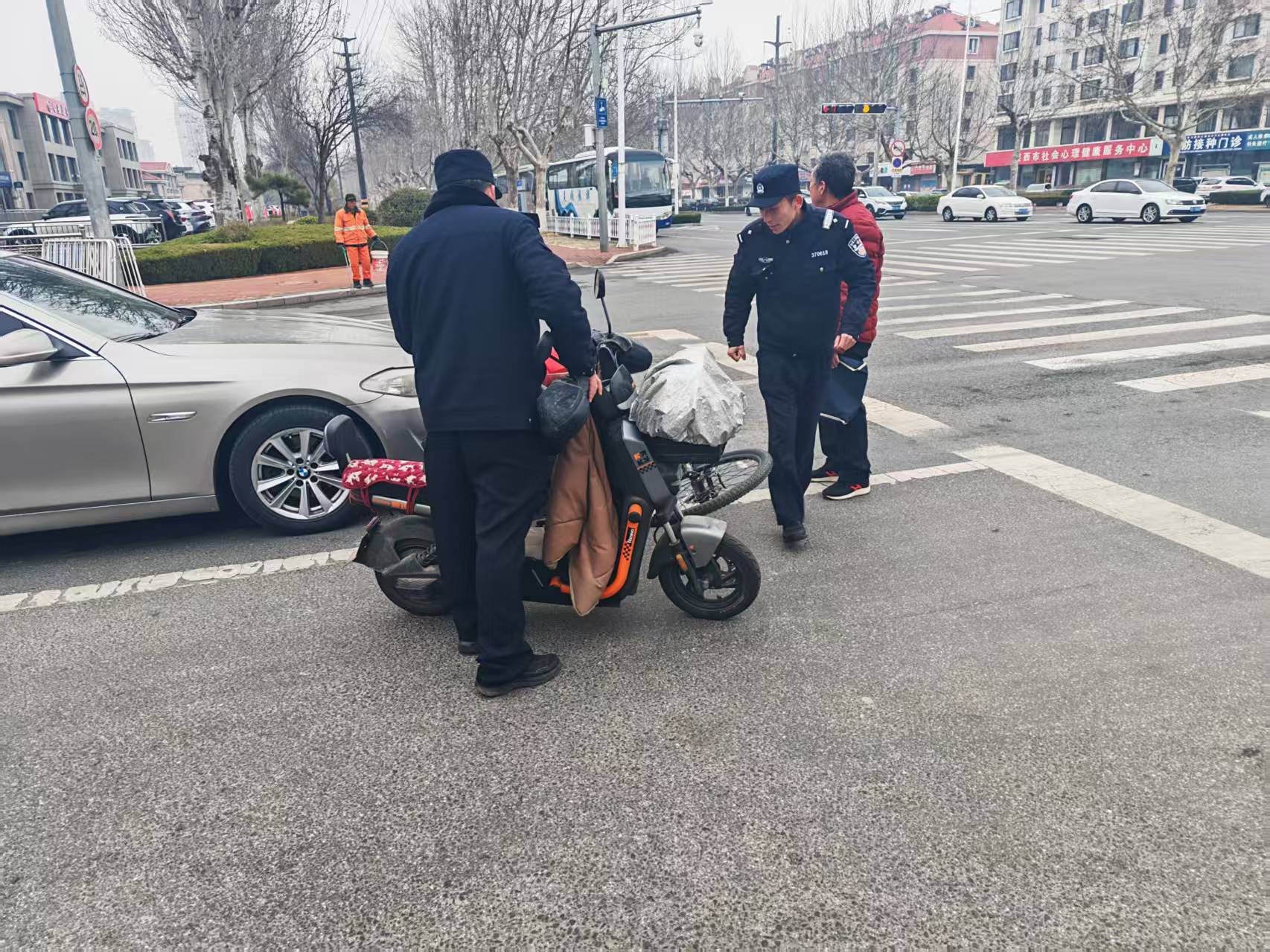 2026年3月3日9时30分许,青岛莱西店埠派出所民警王健羽和辅警于江涛、王长征在莱西市上海路与长岛路路口参加安保工作执勤时,发现两名群众因交通事故摔倒在路边。