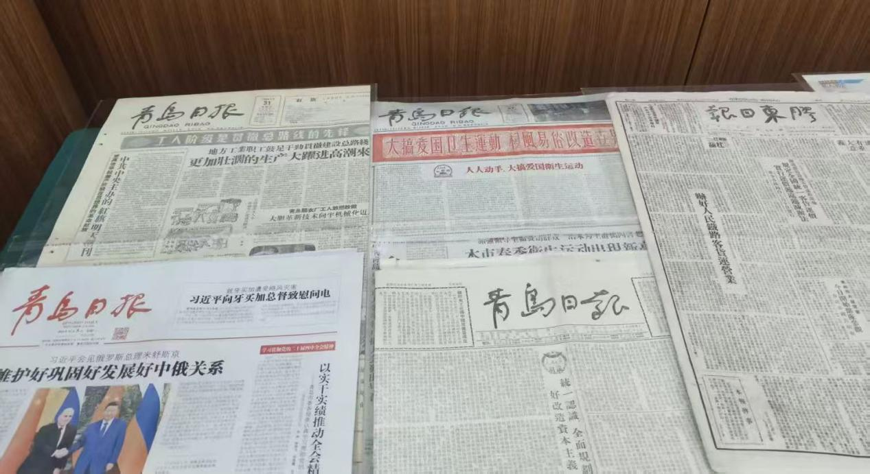 笔会现场,舒同先生题签精品展暨舒体作品选、舒体精品集、纪念封首发启动仪式揭幕,来自青岛的红色收藏家孙见东精心挑选展示了舒同题签报头资料120份、相关书籍明信片数十种。其中,舒同不同时期题写的《青岛日报》报头,吸引了参观者的目光。