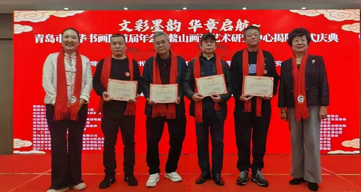 本网青岛讯 (记者 吕勇进 通讯员 赵媛) 为助力青岛市文化事业的发展,为岛城书画家搭建好展示平台,青岛市文华书画院首届年会暨鳌山画派艺术研究中心揭牌仪式于1月18日举行。