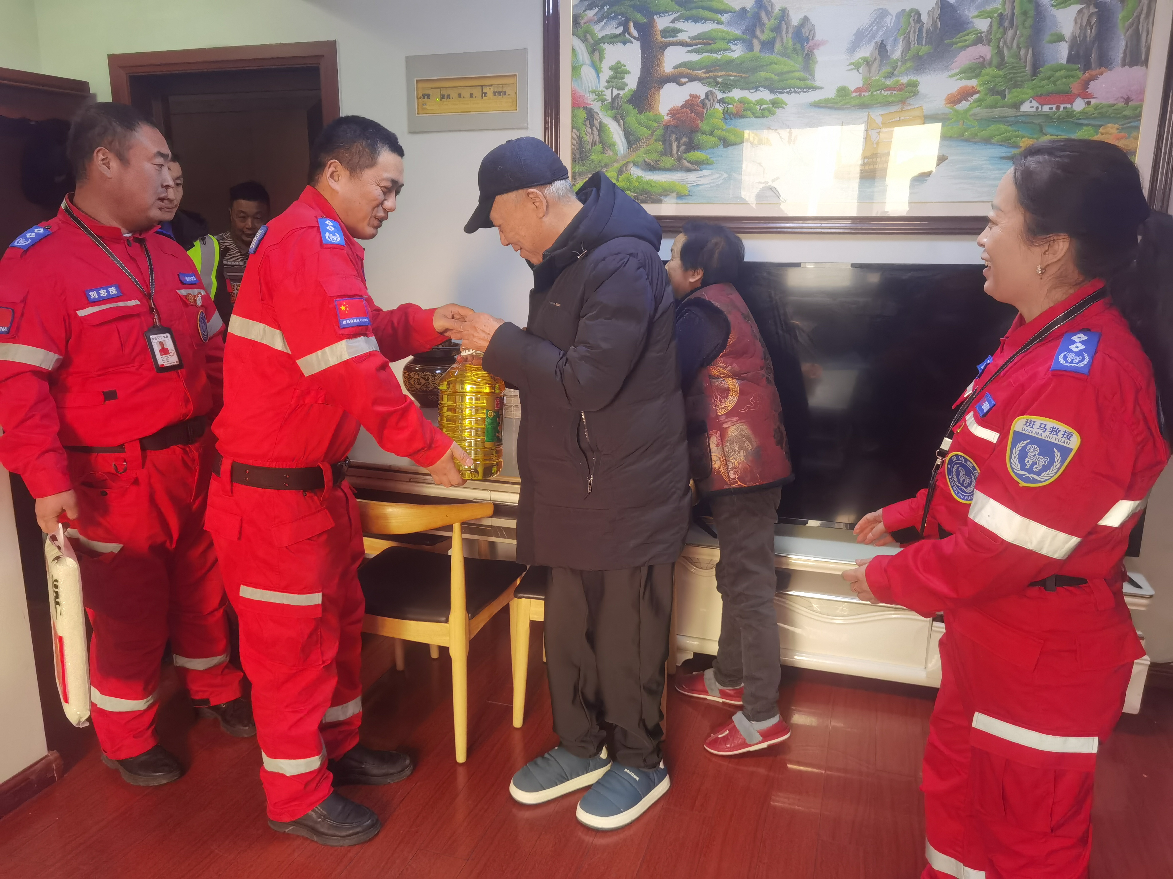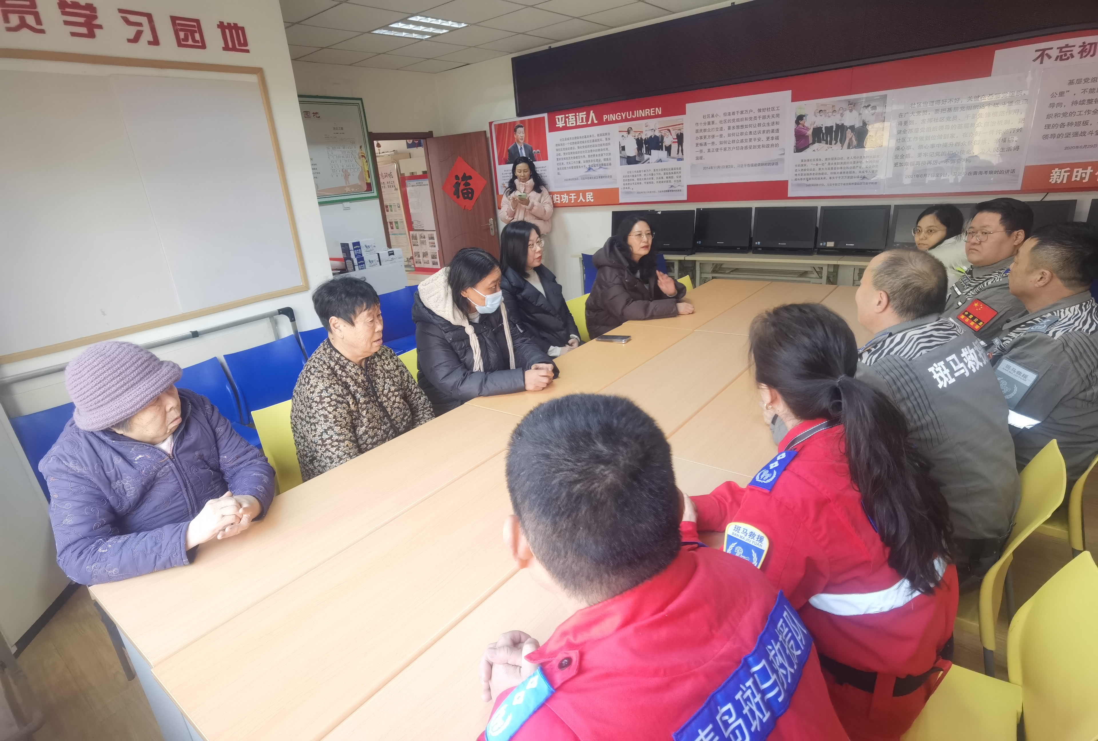 临近年关,队员们自发组织,自筹资金购买慰问物资,将关爱延伸至社区需要帮助的家庭。活动中,救援队员与街道领导及工作人员一同走进社区党群服务中心及党员家中,详细询问他们的身体状况、生活情况及实际需求,传递温暖与力量。