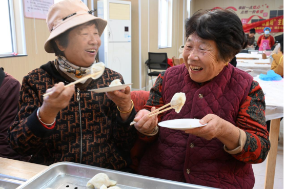 当天上午9时许,青岛市即墨区龙泉街道天一仁和郡社区里已经热闹非凡,医疗服务队志愿者正在帮老人们按摩、体检,提供健康咨询;理发组志愿者帮老人们理发、打扫清洁,手工组志愿者教老人学剪纸、做简单的手工艺品,社区里一片欢声笑语。为老人们包顿水饺,国立巾帼志愿者们以这种特别的形式向老人祝贺节日。洗菜切肉、和面拌馅,大家围在老人娱乐活动室的桌子周边一起包饺子,其乐融融。一个多小时后她们就包好了饺子。当把热腾腾的饺子端到老人面前时,老人们开心地笑了。志愿者们端上一盘盘热气腾腾的饺子,老人们吃得十分开心,整个食堂欢笑声不断,比过年还热闹。