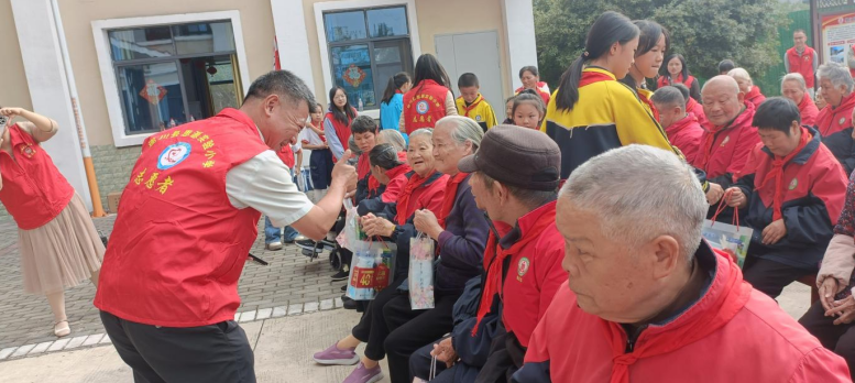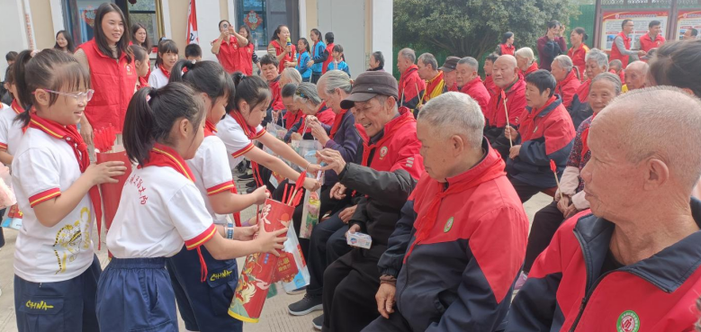 活动现场,胸前的党徽与鲜红的红领巾相映成辉,成为最亮眼的“暖色符号”。正人红军小学党委委员、副校长康云龙在致辞中表示,学校依托红军小学深厚红色底蕴,以党建为引领开展此次活动,既是传承“尊老敬老”传统美德的具体实践,更是让红色精神在志愿服务中落地生根的生动课堂。