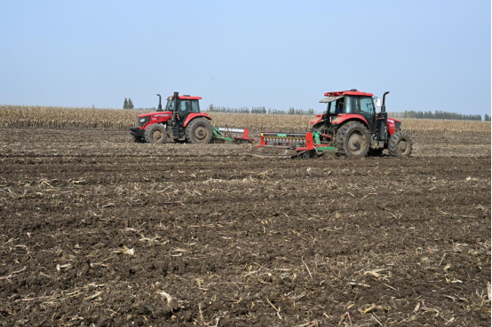 在青岛市即墨区田地里到处是一片繁忙景象。平整耕地,播撒肥料,播种麦子,多辆拖拉机、播种机穿梭于田间……农历“立冬”节气将至,山东省青岛市即墨区农民抢抓农时,开展采收、播种、农作物管护等农事,田间地头一派繁忙景象。