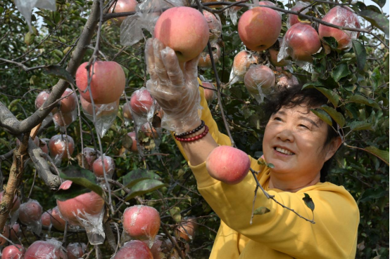 山东省青岛市即墨区段泊岚镇毛家岭一村农民在采摘苹果