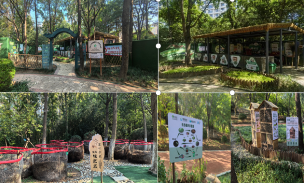 活化公园空间改建“城阳区垃圾分类低碳循环示范教育基地”是本项目的一大亮点。2023年结合垃圾分类宣教和奥林匹克雕塑文化园(总面积43万平方米)园林垃圾处置需求,对公园园林垃圾堆放区进行改造,逐渐建成包含堆肥小院、落叶堆肥区、零废弃生境园三个区域,共有26个堆肥筐,堆体容量超70m³,总面积约1000㎡的示范基地。