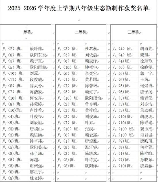 本次活动以“科学性与美观性并重”为核心要求,鼓励学生立足生态系统知识,自主完成微型生态系统的设计与搭建。学校初中生物组4位教师组建专业评审团,从生态系统完整性(物种搭配、循环逻辑)、生物种类丰富度、生物存活潜力、景观设计美观性四大维度展开细致评审,最终评选出各级奖项。