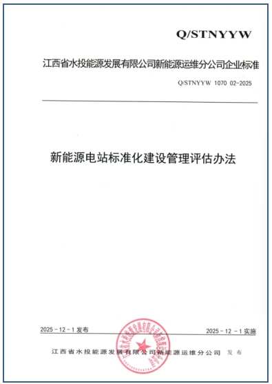 本网江西讯(郭学军 吴钒)12月1日,江西省水投能源发展有限公司新能源运维分公司正式发布新修订版《新能源电站标准化建设管理评估办法》(Q/STNYYW 1070 02-2025)。