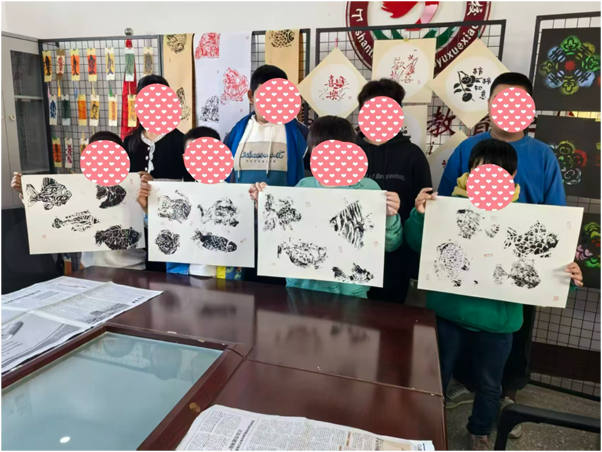 活动现场,充满古韵的教室氛围里,老师通过多媒体展示为孩子们讲解拓印的历史渊源与文化价值,随后手把手指导大家完成铺宣纸、蘸墨、拍拓的完整流程。孩子们专注地挥动工具,指尖起落间,一幅幅带着古朴纹理的拓印作品逐渐成型,在作品展示环节,大家踊跃分享创作心得,互相欣赏点赞,在轻松互动中增强了自信与合作意识。