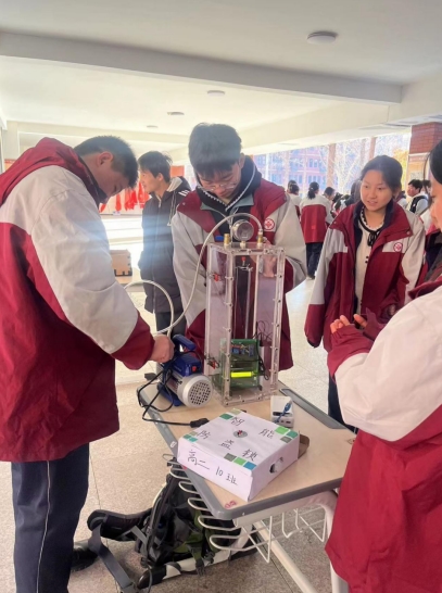 本届科技节是落实教育部等七部门《关于加强中小学科技教育的意见》(教基〔2025〕7号)精神的具体实践,紧扣“学科融通、学用结合、知行合一”原则,聚焦立德树人根本任务,创新课程生态与教学方式。学校精心设计的十大竞赛项目分层分类推进,既兼顾成果转化与素养普及:从应用电子电路、人工智能的个人科技制作竞赛,到高二年级使用Arduino控制板的智能防盗装置团体赛;从C60、DNA分子模型制作的学科实践,到编程无人机、3D打印三维模型的前沿技术比拼,全方位覆盖不同学段、不同兴趣的学生,部分优秀作品还将被推荐参加省、市、区级科技创新赛事。