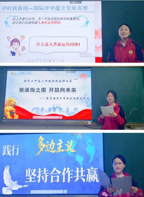 本次大赛是信丰二中推进“课程育人”与“活动育人”深度融合的生动实践,是创新“五个一”大德育活动及思想政治教育教学形式的有益探索。它不仅为学子提供了展示综合素质的舞台,更在校园内营造了关注社会、勤于思考、乐于表达、勇于担当的浓厚氛围。相信二中学子必将以此为契机,继续用青春视角观察时代,以家国情怀引领成长,在思考与实践中砥砺前行,让青春在为祖国、为民族、为人民的不懈奋斗中绽放绚丽之花。