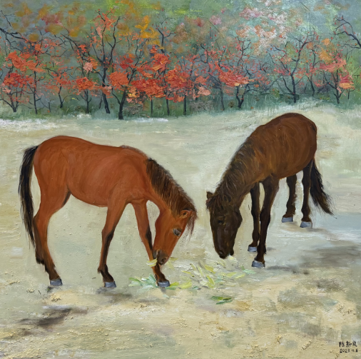 归途,我们一人抱住一只长南瓜,我信手折下一茎枯芦,当作手杖,轻轻敲打着冻得硬实的泥土,发出空空的清响。他说:“走吧。火已经种在我们身上了。”我回头望去,山庄的轮廓已沉入暮霭,那排水杉树只剩下剪纸般深蓝的剪影。唯有我们燃起的那缕烟,细弱,顽韧,像一句斟酌了许久仍未写完的诗,带着无限的眷恋与余韵,弯弯地,袅袅地,升向已现出星子的天际。它是在替我们,向这片收留了我们一日散漫时光的山水,签下最后一个温柔的名字。