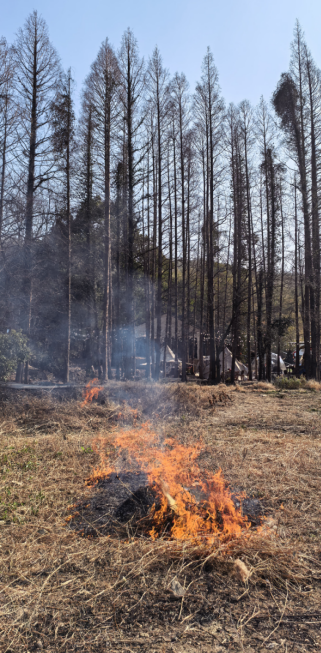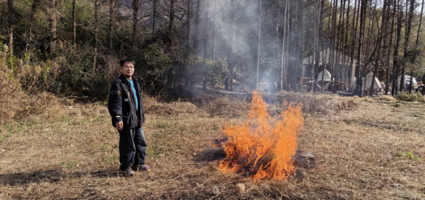 真正的火焰,是在午后燃起的,那是在任何活动指南上都不会记录的章节。慈溪画家陈新良从草地上拖出一大捆枯败的野草,冲我们眨眨眼,那神情像个准备恶作剧的孩童:“点火去?”风正掠过水杉林,发出涛声,我望着那干燥的草垛,心里无端一紧:这火舌若借了风的威势,岂不要将这满眼的“蓝晕”与静谧,都焚作一场壮烈的白灰?新良却笑了,笑容里有种洞悉世情的坦然。他说他几乎日日如此,一手握着画笔,调和着亚麻布上的湖光山色;一手便执这野火,将昨日的枯槁与衰败,坦然地付与一场洁净的毁灭。语罢,打火机点燃,一道金红的弧线坠入草中。