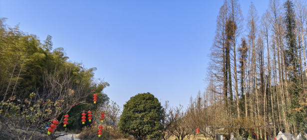 湖屿杉山庄,静泊于浙江省宁波市慈溪市鸣鹤镇白洋村的白洋路旁。地图上寻它,需得一番细心;驱车往访,亦需几转几回。它并非招摇的景点,而更像一座被时光妥善收藏的森林秘境。这里是度假村,有步道蜿蜒,有动物栖息,适合友人相聚,团队同行,更适合打掼蛋,品佳茗、尝土鸡、土菜,诗书画歌创作,亦或只是为逃离市声寻一个摄影的角落。周遭有杨梅林远近闻名,夏日来时,想来别是一番红绿交映的热闹。这些描述,勾勒了它的形骸,却未曾触及它的灵魂。我今日随慈溪画家陈新良踏访,所遇所感,远非这寥寥数语可以囊括。