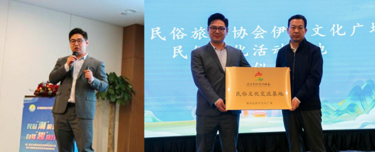 伊莎文化中心运营负责人董鹏介绍了文化广场与平台建设,产业园与文化运营的互动经验。鉴于伊莎文化广场有宽敞的文化空间及对中华传统文化的持续探索与弘扬,北京民俗旅游协会授予“民俗文化交流基地”,加强联动交流。