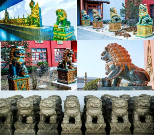 这些琉璃狮子造型逼真,仿佛被赋予了生命。肌肉线条刚劲,似蕴含无穷力量,随时准备奔腾。或昂首挺立,双目圆睁凝视远方,守护一方安宁;或微微侧首,嘴巴微张似在咆哮,尽显王者风范;又或蹲坐于地,前爪撑身、尾巴下垂,沉稳庄重。飘逸的鬃毛根根分明,灵动飘逸。