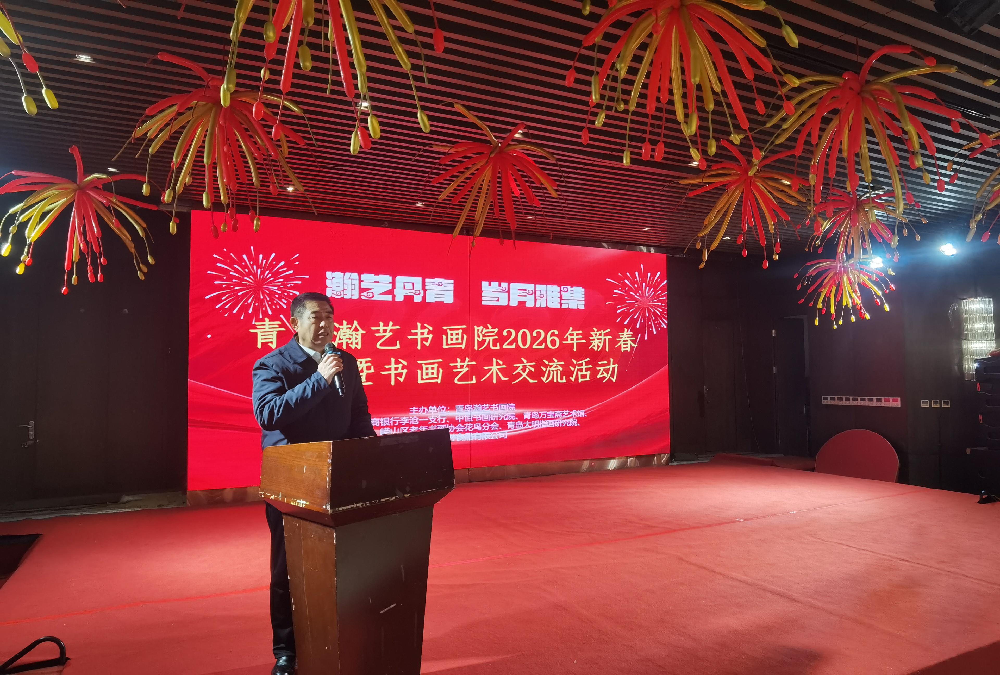 本网青岛讯(记者 吕勇进 通讯员 黄淑美 吴智超)2026年1月21日,青岛海明威大酒店内热闹非凡,“瀚艺丹青·岁月雅集”2026年新春年会暨书画艺术交流活动在此圆满举行。此次活动由青岛瀚艺书画院、山东省国林助学慈善基金会联合主办,约200位社会各界人士齐聚一堂,共贺新春、共赏艺韵。
