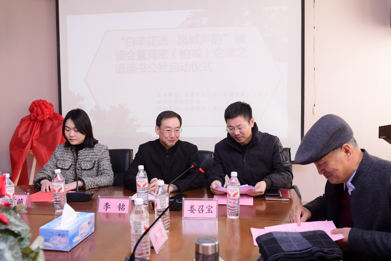 本网山东高密讯 2026年1月24日,“白羊花语·凤城声韵”诵读会暨山东高密“企家之道读书公社”揭牌仪式,在柏城镇创业园三楼书画厅隆重举行。该“读书公社”是由高密市关工委主导、柏城镇关工委承办,并联动小草基金旗下“企家之道读书公社”共同组织的一项读书盛会。旨在落实国务院颁布的《全民阅读促进条例》,在全社会特别是青少年中营造书香雅韵氛围,提升市民文化素质。