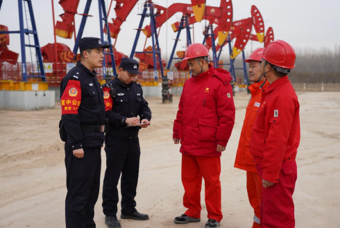 “过年期间井站的安全更为重要,不能掉链子。”一进腊月,民警们就会去附近村里赶大集,向村民讲解油气安全和反诈知识。过年前的那几天,民警们到联合站检查时,都会带上春联,检查完给站上的职工也送上新春祝福。