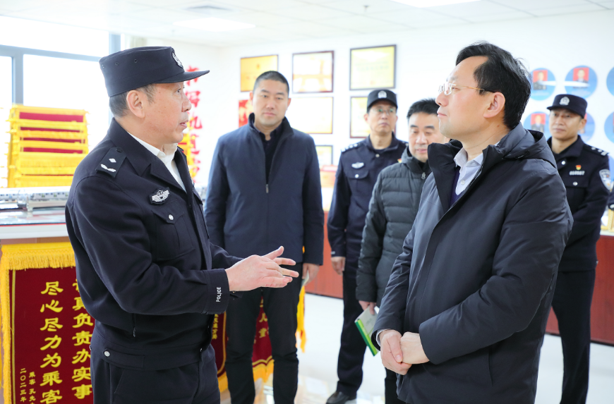 2026年1月27日,石家庄市轨道交通集团有限责任公司党委书记、董事长付朝立一行到轨道交通分局看望慰问全体警员,并就深化协作、共筑平安地铁开展交流。轨道交通分局党委书记、局长韩冬参加活动。