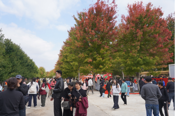 据悉,本届红枫文化节预计持续20多天,策划了集赏枫、游乐、研学、惠民于一体的系列精彩活动:林下读书会带游客在枫影间品读诗意,写生笔绘邀请游客用画笔定格红枫之美,枫林音乐节以旋律奏响秋的乐章,儿童秋枫研学活动让孩子探索自然奥秘。节会期间,农夫市集和美食市集将同步开启,潮玩游乐区还设有旋转木马、七彩滑道等项目。值得一提的是,本届红枫文化节推出限定集章福利,游客可体验“看红枫、赶大集、住民宿、刨地瓜、喂萌宠、游花海”等多元玩法,沉浸式感受乡野秋趣。