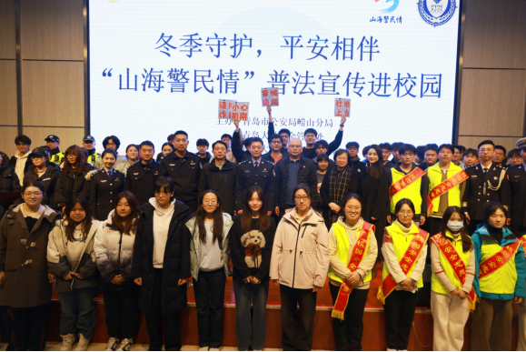本网青岛讯 (通讯员 马青青)为夯实“平安崂山”建设根基,全力打造“平安校园”,12月4日下午,青岛市公安局崂山分局“山海警民情” 普法宣传活动走进青岛大学麦岛校区,通过“宣讲+节目+互动”的立体化模式,为200余名师生带来了一场内容丰富、形式生动的法治安全课。