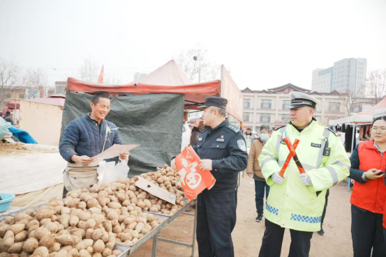 在一个平常的大集日,一位来赶集大爷的三轮车车胎泄了气,装满东西的车子怎么也推不上了路,大爷急得只好横下车,把东西再一件一件地搬下来。鲍锋见状,撸起袖子帮上了忙,在几人的齐心协力下,终于把车子推出了集市,并送到了附近修理店。每逢农历三、八的上马大集,鲍锋“举手之劳”的事还真不少,忙着调解摊主和顾客的斤两纠纷,忙着给大家提醒,忙着给赶集的人们发宣传单、讲反诈知识。散集后,他还要和同事们巡查集市的犄角旮旯,确认没有安全隐患才最后离开。一站就是五六个小时,就这样的坚持、一直坚持,上马大集变成了周边百姓安心的好去处。