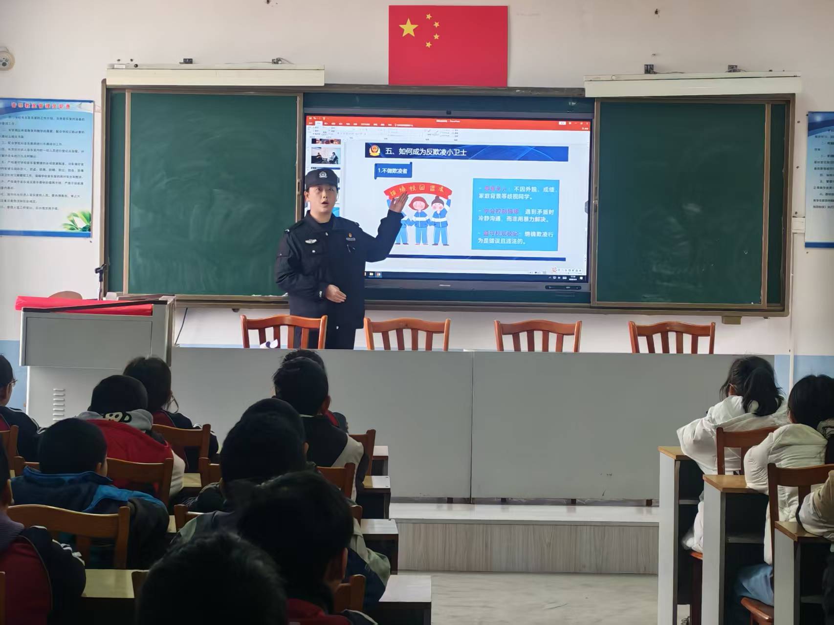 课堂上,民辅警结合学生年龄特点与校园生活实际,用通俗易懂的语言、贴近生活的真实案例,围绕预防校园欺凌、防范电信网络诈骗、交通安全、消防安全、未成年人保护等重点内容展开讲解。通过以案释法、互动问答的形式,清晰解读法律底线,教会学生辨别是非、远离危险,引导大家遇到侵害时及时向老师、家长求助,学会用法律武器保护自身合法权益。此次活动不仅为新学期校园安全开好头、起好步,更深化了警校联动机制,为构建平安、和谐、法治校园奠定了坚实基础。