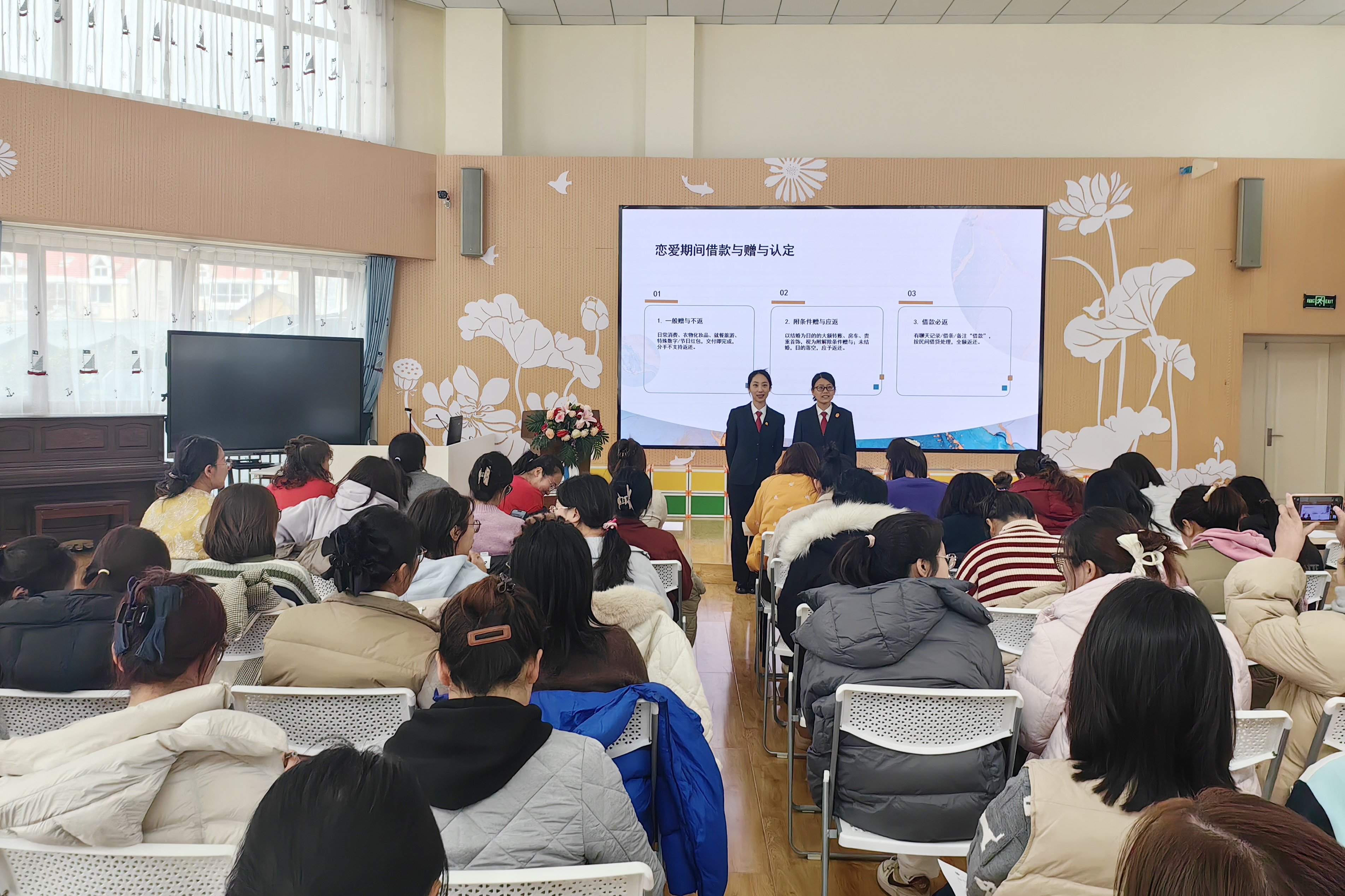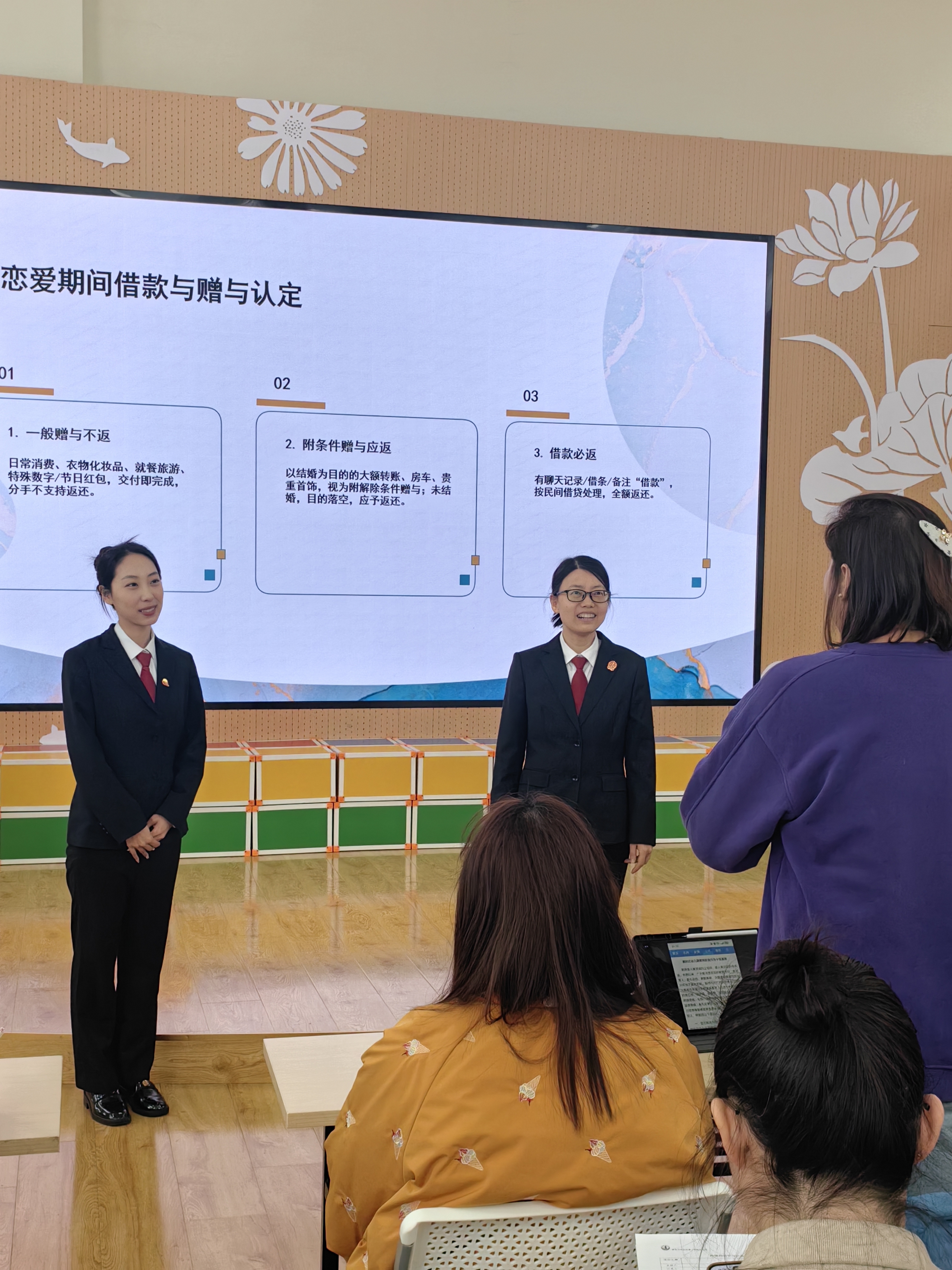 课堂上,云南路法庭法官助理李星以“守护女性权益”为主题,紧密结合当下婚恋观念的新变化、新特点,深入解读了婚前财产界定、恋爱期间赠与等法律问题。云南路法庭书记员曲姿颖结合家事审判工作实践,以案释法,生动形象地讲解了夫妻共同债务认定、赠与房产分割等与日常生活密切相关的法律知识。