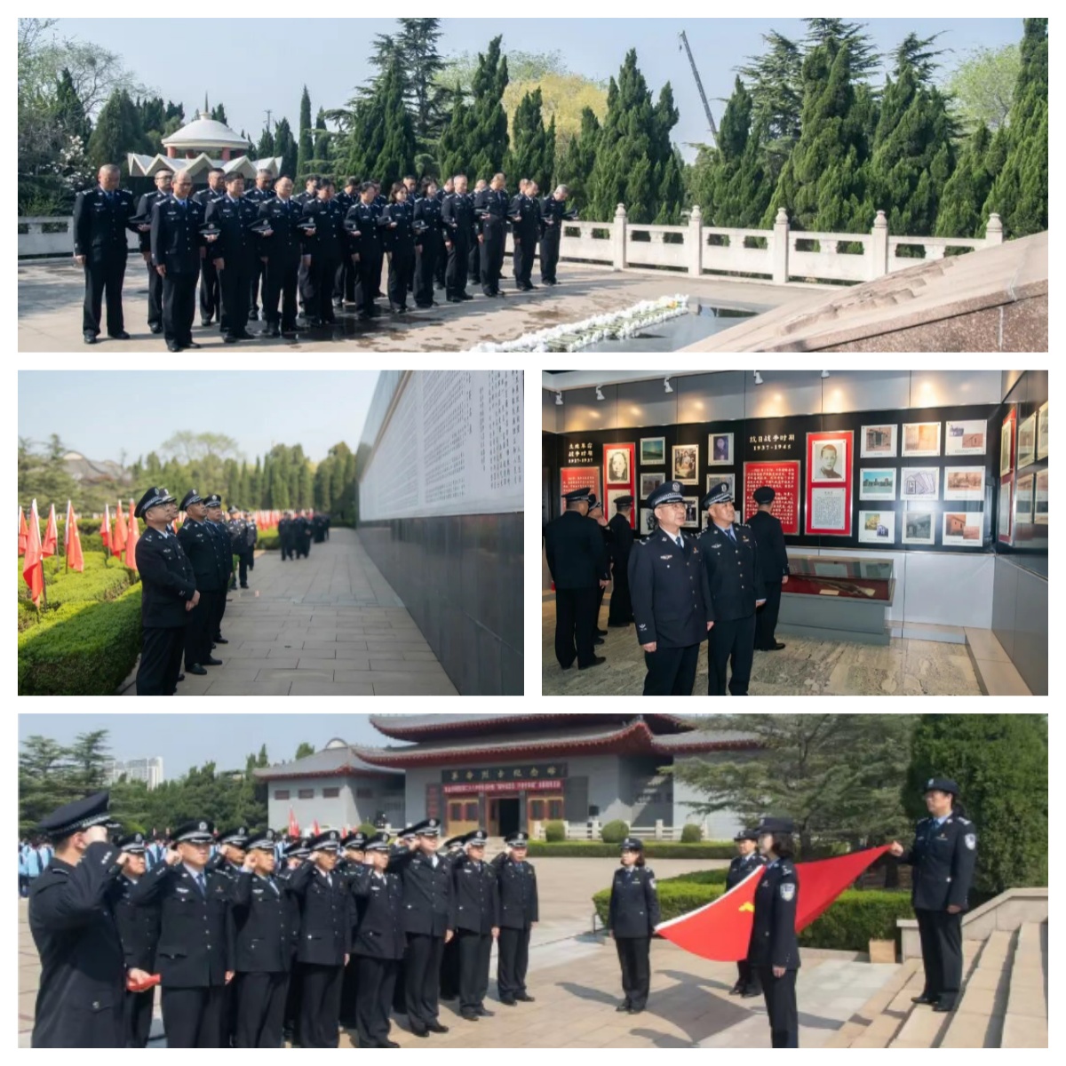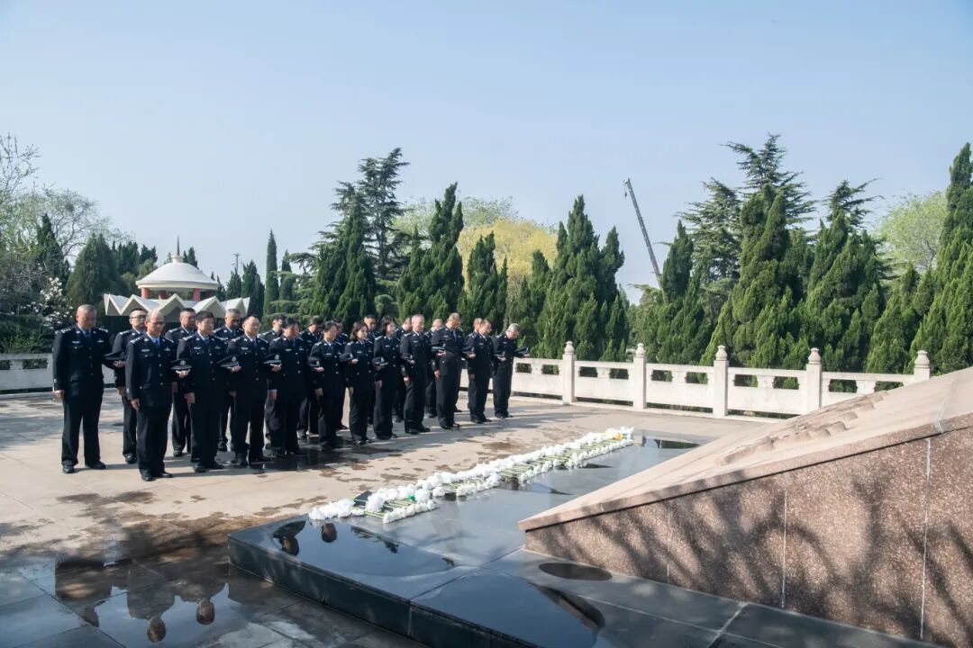 上午9:30,烈士英名录纪念墙前庄严肃穆,全体干警脱帽肃立、鞠躬默哀,向不同历史时期为国家独立、民族解放和人民幸福而英勇献身的3358名革命先烈,致以最崇高的敬意与最深切的悼念。默哀仪式后,全体人员步入革命烈士纪念馆展厅,泛黄的家书、斑驳的军号、褪色的战报静静陈列,无声诉说着烽火岁月里先烈们滚烫的热血与赤诚的忠魂,那些为信仰赴汤蹈火的身影仿佛穿越时空,叩击着每一位党员的心灵,让大家在历史回响中汲取精神养分、筑牢信仰之基。最后,在青石台阶前、鲜红党旗下,全体干警高举右拳,重温入党誓词,铿锵有力的誓言久久回荡在陵园上空,激荡起赓续奋进的磅礴力量,彰显了全体干警不忘初心、牢记使命的坚定信念与责任担当。